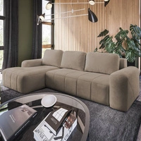 Narożnik z funkcją spania Bovec ciemny beżowy lewostronny stylowy narożnik rozkładany o ergonomicznym kształcie hydrofobowa tkanina