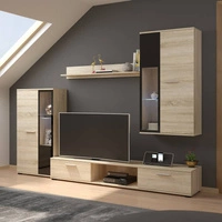 Meblościanka Senja dąb sonoma jasny nowoczesny design witryna stojąca i wisząca półki z bezpiecznego szkła hartowanego