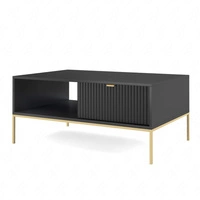 Stolik kawowy Lovro czarny z szufladami nowoczesny design blat odporny na rozlane ciecze złote metalowe nogi