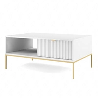 Stolik kawowy Lovro biały z szufladami nowoczesny design blat odporny na rozlane ciecze złote metalowe nogi