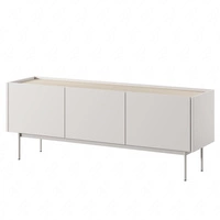 Szafka RTV Vellore 144 cm beżowa minimalistyczny design bezuchwytowe fronty metalowe nogi w kolorze frontów szafki obniżony blat