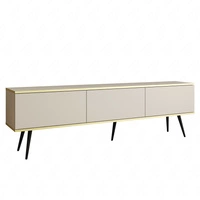 Szafka RTV Luxury 175 cm beżowa elegancki design korpus zwieńczony złotą listwą szafka wsparta na złotych metalowych nogach
