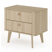 Szafka nocna Viki dąb barista nowoczesny design szafki do sypialni zaoblony kształt subtelne okrągłe uchwyty drewniane nogi