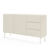 Komoda z szufladami Muti 147 cm beżowa stylowa komoda z designerskim ryflowaniem wysokie nogi podkreślają elegancką stylistykę