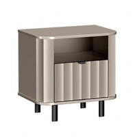 Szafka nocna Novado clay grey elegancka szafka do sypialni w stylu minimalistycznym oryginalny frezowany front metalowa podstawa