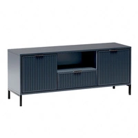 Szafka RTV Linka 135 cm indigo nowoczesny design ciekawy wzór na frontach w postaci frezowanych ryfli metalowa podstawa