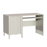 Biurko Malumi 135 cm beżowe doskonałe biurko do domowego biura dekoracyjny wzór jodełki na froncie mebla system push to open
