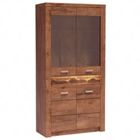 Witryna Indiana 96 cm jesion jasny stylowa witryna do salonu elementy z bezpiecznego szkła ozdobna deska na froncie witryny