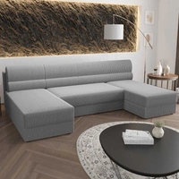 Narożnik z funkcją spania Fogu U szary popiel komfortowy i stylowy narożnik o prostym designie sztruksowa tkanina pojemnik na pościel
