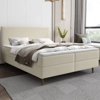 Łóżko kontynentalne Irvine 180x200 beżowe stylowe łóżko z pojemnikiem na pościel wygodne wezgłowie zachwyca eleganckim designem