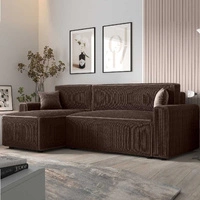 Narożnik z funkcją spania Brandon Bis brązowy lewostronny trójwymiarowa tkanina o wyrazistych prążkach pojemnik na pościel
