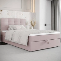 Łóżko kontynentalne Flint 120x200 pudrowy róż w nowoczesnym skandynawskim stylu z tapicerowanym zagłówkiem łóżko z pojemnikiem