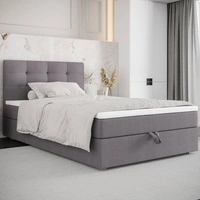 Łóżko kontynentalne Flint 120x200 szare w nowoczesnym skandynawskim stylu z tapicerowanym zagłówkiem łóżko z pojemnikiem