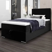 Łóżko kontynentalne Fargo 90x200 czarne w nowoczesnym skandynawskim stylu z tapicerowanym zagłówkiem łóżko z pojemnikiem
