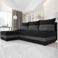 Narożnik z funkcją spania Bowers czarny / grafitowy lewostronny narożnik z pojemnikiem na pościel gwarancja najwyższego komfortu