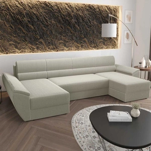 Narożnik z funkcją spania Fogu U III kość słoniowa stylowy narożnik z podłokietnikami i pojemnikiem na pościel sztruksowa tkanina