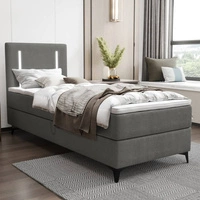 Łóżko kontynentalne Norco 140x200 beżowe stylowe łóżko z pojemnikiem na pościel oświetlenie umieszczone w zagłówku nadaje wyjątkowości
