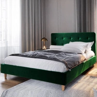 Łóżko tapicerowane Isara 160x200 butelkowa zieleń z pojemnikiem w nowoczesnym skandynawskim stylu z charakterystycznym wezgłowiem oraz z zanóżkiem