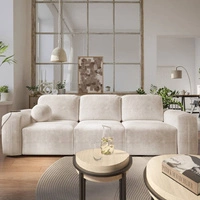 Sofa z funkcją spania Arbon kremowa komfortowa i stylowa sofa do salonu miękka pluszowa tkanina nadaje unikalnego charakteru