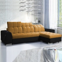 Narożnik z funkcją spania Luigi miodowy / czarny prawostronny narożnik z dwoma pojemnikami na pościel tkanina o ciekawej strukturze