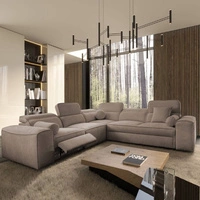 Narożnik z funkcją spania Tesalia III Lux niebieski lewostronny komfortowy narożnik z wysuwanym podnóżkiem funkcja przesuwanego oparcia