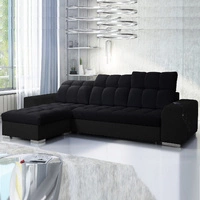 Narożnik z funkcją spania Kelly Sleek II czarny lewostronny elegancki narożnik do salonu wykonany z miękkiej tkaniny typu velvet