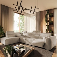 Narożnik z funkcją spania Cantare XI Lux beżowy lewostronny komfortowy narożnik do salonu z podnoszonym podnóżkiem miękka tkanina
