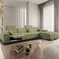 Narożnik z funkcją spania Penejos VII zielony lewostronny stylowy narożnik z pojemnikiem na pościel wygodne regulowane zagłówki