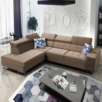 Narożnik z funkcją spania Cetara XII kremowy prawostronny stylowy design komfortowe przesuwane oparcia dwa pojemniki na pościel
