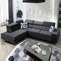 Narożnik z funkcją spania Cetara XII szary lewostronny stylowy design komfortowe przesuwane oparcia dwa pojemniki na pościel