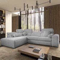 Narożnik z funkcją spania Tesalia VII szary lewostronny nowoczesny design komfortowe przesuwane oparcie szuflada w boczku mebla