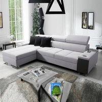 Narożnik z funkcją spania Castel VII szary popiel lewostronny stylowy narożnik z pojemnikiem na pościel i regulowanymi zagłówkami