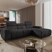 Narożnik z funkcją spania Castel grafitowy prawostronny komfortowy i stylowy narożnik rozkładany z pojemnikiem na pościel