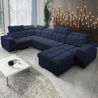 Narożnik z funkcją spania Kelly Sleek X arktyczny błękit lewostronny niezwykle elegancki narożnik do salonu z regulowanymi zagłówkami