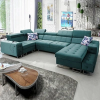 Narożnik z funkcją spania Cetara VI błękitny lewostronny komfortowy i stylowy narożnik rozkładany z przesuwanymi oparciami
