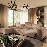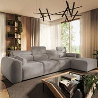 Narożnik z funkcją spania Cantare VIII beżowy lewostronny gustowny narożnik z regulowanymi zagłówkami pojemniki na pościel