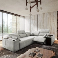 Narożnik z funkcją spania Penejos XII szary popiel lewostronny stylowy narożnik z pojemnikami na pościel komfortowe regulowane zagłówki