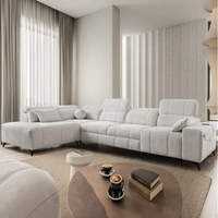 Narożnik z funkcją spania Penejos IX szary popiel lewostronny stylowy narożnik z pojemnikami na pościel wygodne regulowane zagłówki