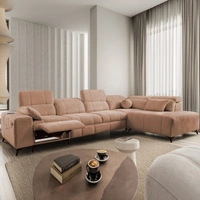 Narożnik z funkcją spania Penejos VII łososiowy prawostronny stylowy narożnik z pojemnikiem na pościel wygodne regulowane zagłówki