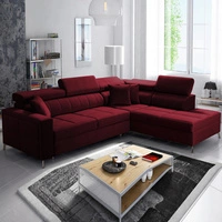 Narożnik z funkcją spania Nausa III bordowy prawostronny velvet stylowy komfortowy narożnik regulowane zagłówki pojemnik na pościel