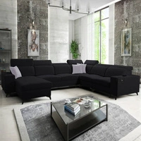 Narożnik z funkcją spania Kelly Sleek VI czarny prawostronny nowoczesny design narożnik do salonu z regulowanymi zagłówkami