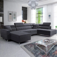 Narożnik z funkcją spania Castel IV grafitowy lewostronny stylowy narożnik z pojemnikami na pościel i regulowanymi zagłówkami