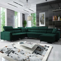 Narożnik z funkcją spania Nausa VII butelkowa zieleń prawostronny elegancki narożnik do salonu wykonany z miękkiej tkaniny typu velvet