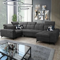 Narożnik z funkcją spania Viano szary popiel prawostronny stylowy narożnik o ciekawym kształcie regulowane zagłówki ozdobne poduszki
