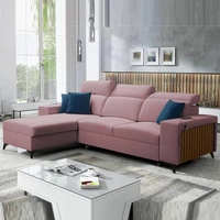Narożnik z funkcją spania Kelly indyjski róż lewostronny velvet komfort i funkcjonalność bok narożnika wykończony lamelami