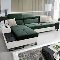 Narożnik z funkcją spania Alcamo III zielony / biały lewostronny funkcjonalny narożnik z szufladą w boczku dwa pojemniki na pościel