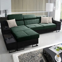 Narożnik z funkcją spania Alcamo zielony / czarny lewostronny elegancki i stylowy narożnik z dostawką praktyczna szuflada w boczku mebla