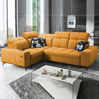 Narożnik z funkcją spania Buffalo II żółty lewostronny funkcjonalny i stylowy narożnik rozkładany z regulowanymi zagłówkami