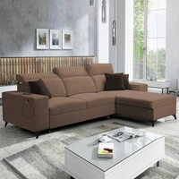 Narożnik z funkcją spania Cetara XII brązowy prawostronny stylowy design komfortowe przesuwane oparcia dwa pojemniki na pościel