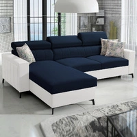 Narożnik z funkcją spania Provo III granatowy / biały prawostronny narożnik z pojemnikiem na pościel i regulowanymi zagłówkami